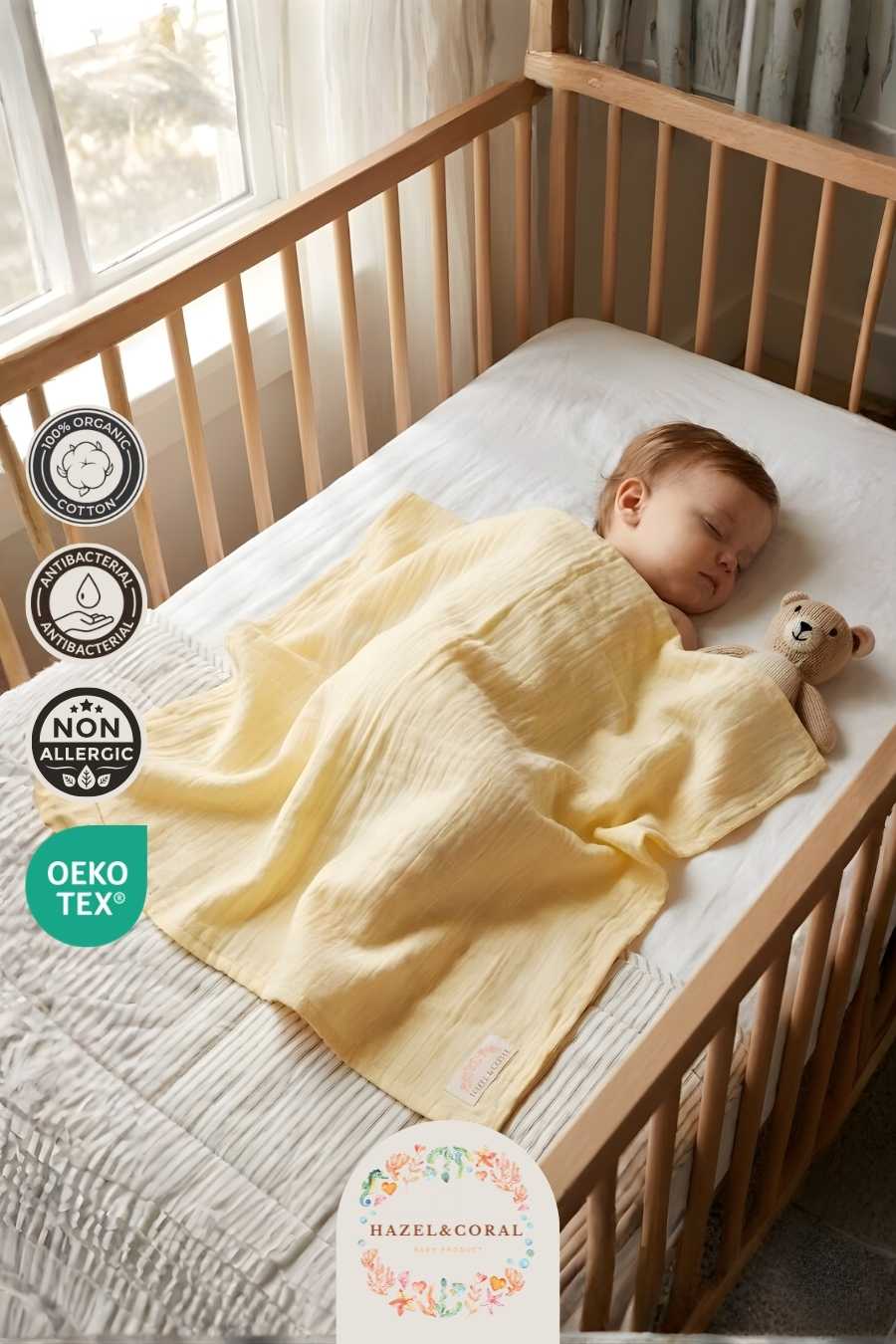 Müslin kumaşın hava geçirgen yapısı terlemeyi azaltır ve bebeğinizin vücut ısısını dengede tutar. Özellikle uyku sırasında ideal bir konfor sağlar.