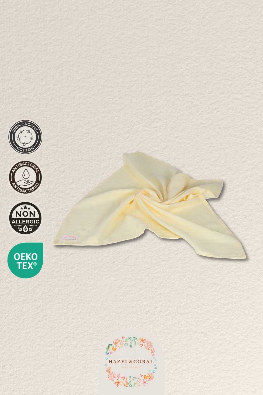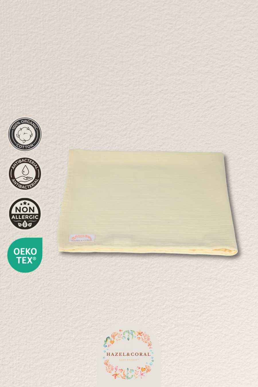 2 Katlı Müslin Bebek Örtüsü Sarı, bebeğinizin hassas cildi düşünülerek tasarlanmış, %100 organik pamuklu müslin kumaştan üretilmiş doğal ve güvenli bir bebek battaniyesidir. Çift katlı dokuma yapısı sayesinde hem hafif hem dayanıklıdır; nefes alabilir dokusu ile bebeğinizin cildine konforlu bir temas sunar.