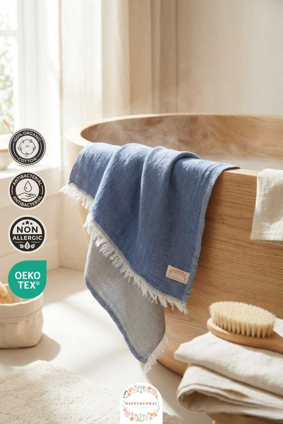 Müslin kumaşın nefes alabilir yapısı, banyo sonrası hızlı kuruma sağlar ve hijyenik kullanım imkânı sunar. Cildi tahriş etmez, doğal nem dengesini korumaya yardımcı olur. Yenidoğan döneminden itibaren güvenle kullanılabilir.