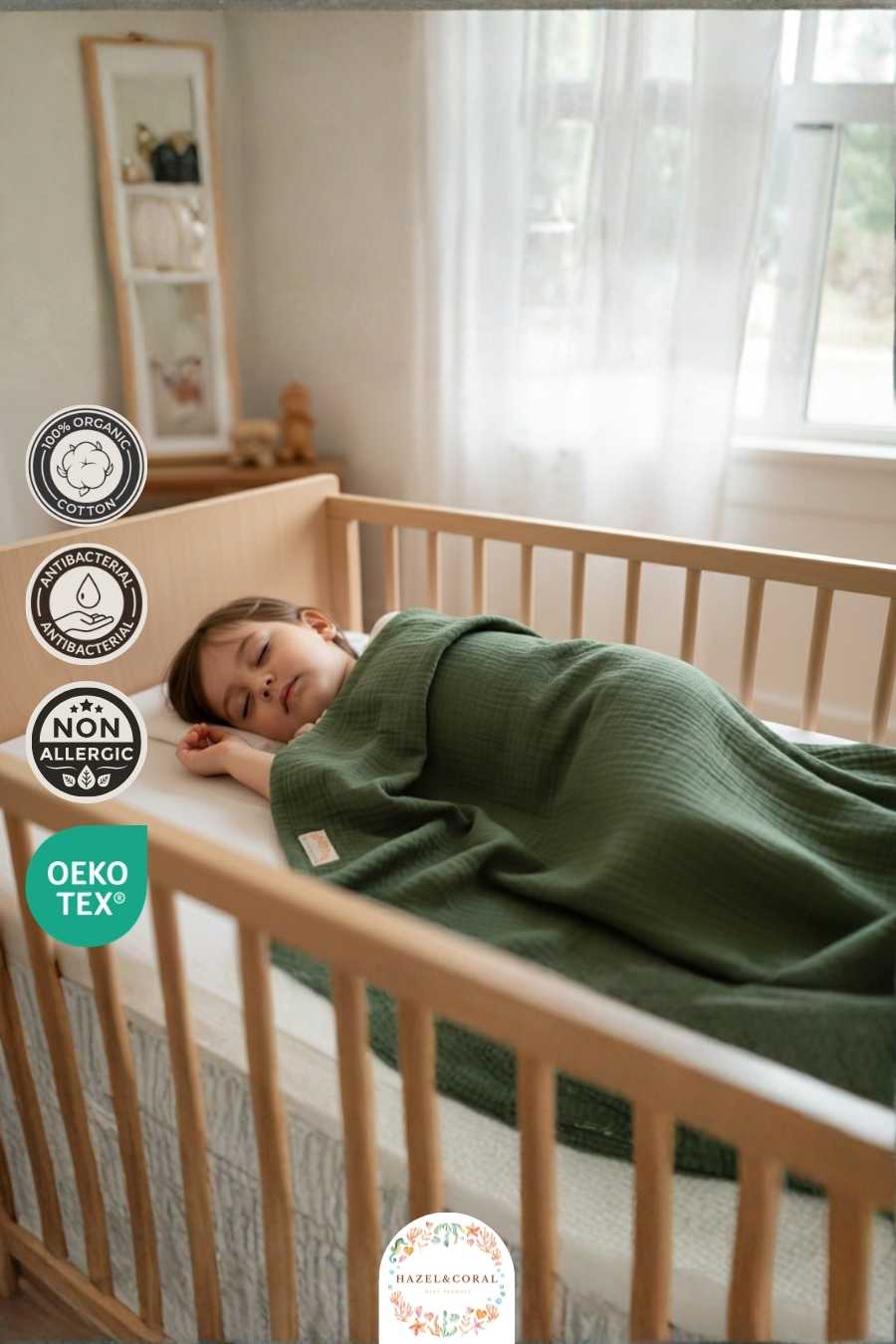 4 Katlı Müslin Battaniyesi Zümrüt Yeşili, bebeğiniz için hem güçlü bir stil hem de üst düzey konfor sunar. Dört katlı müslin dokuma yapısı sayesinde ekstra dolgunluk ve dayanıklılık sağlar. Serin havalarda ideal sıcaklık dengesi oluşturur, hafif yapısıyla bebeğinizi nazikçe sarar ve koruyucu bir katman sunar.