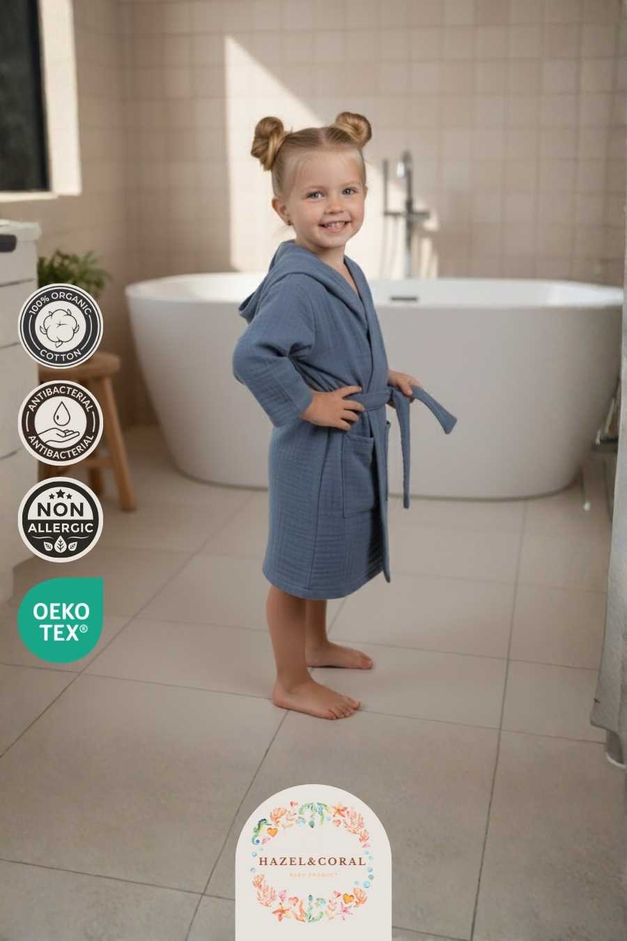 Hassas ciltlerle uyumlu dokusu tahriş riskini minimuma indirir. Nefes alabilen yapısı sayesinde terletmeden konfor sağlar. Kapüşonlu tasarımı baş ve saç bölgesinin hızlı kurumasına destek olurken ekstra koruma sunar.
