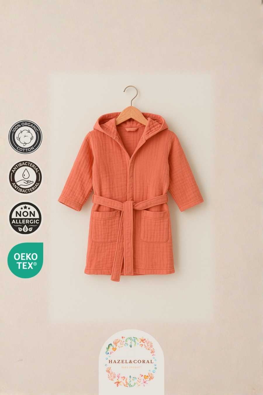 Kiremit rengi, sıcak ve modern tonu ile hem kız hem erkek çocuklar için uygundur. Evde banyo sonrası kullanımın yanı sıra havuz, deniz ve tatil dönemlerinde de pratik bir çözüm sunar.