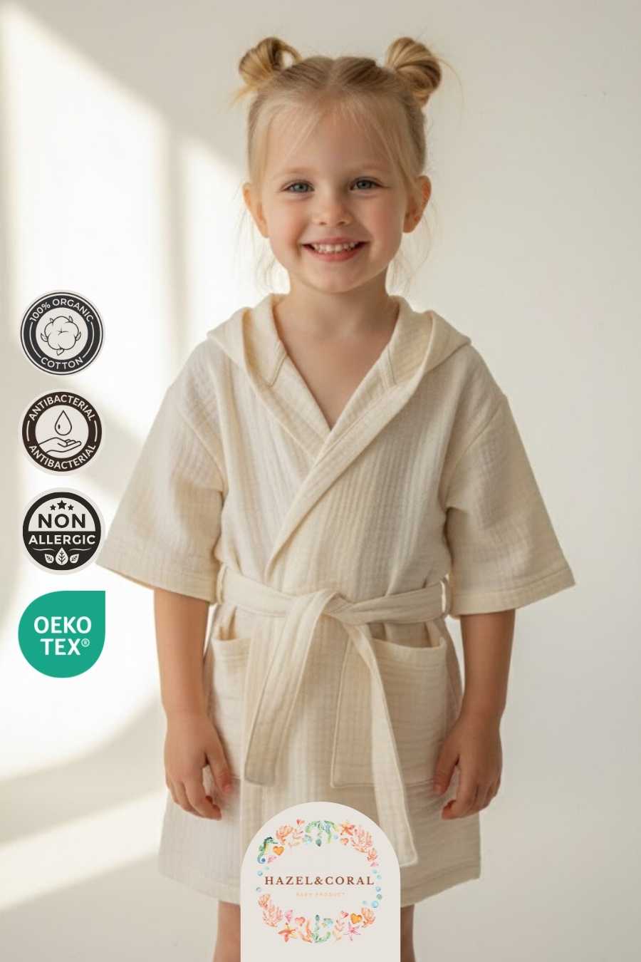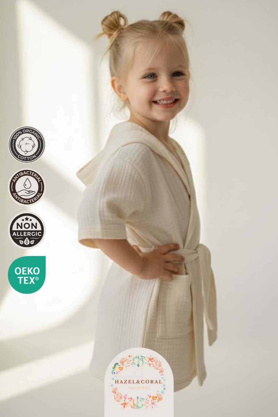 Hassas ciltlerle uyumlu dokusu tahriş riskini minimuma indirir. Nefes alabilen yapısı sayesinde terletmeden rahat bir kullanım sunar. Kapüşonlu tasarımı baş ve saç bölgesinin daha hızlı kurumasına destek olurken ekstra sıcaklık sağlar.