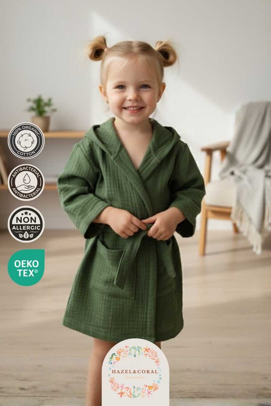 Hassas bebek ve çocuk cildiyle uyumlu dokusu tahriş riskini minimuma indirir. Nefes alabilen yapısı sayesinde terletmeden rahat bir kullanım sunar. Kapüşonlu tasarımı baş ve saç bölgesinin daha hızlı kurumasını desteklerken ekstra koruma sağlar.