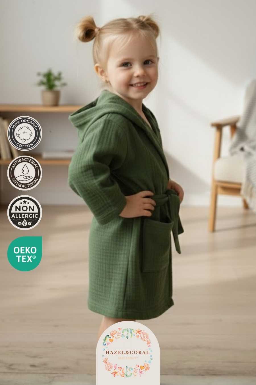 Çocuk & Bebek Bornozu Kapüşonlu Zümrüt Yeşili, banyo sonrası hızlı kuruluk ve maksimum konfor sağlamak için tasarlanmıştır. Yüksek emiciliğe sahip yumuşak kumaşı suyu kısa sürede emer, ciltte ıslaklık hissini azaltır ve bebeğinizin üşümesini önlemeye yardımcı olur.