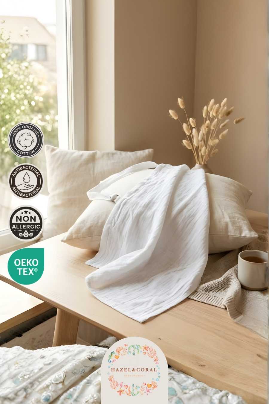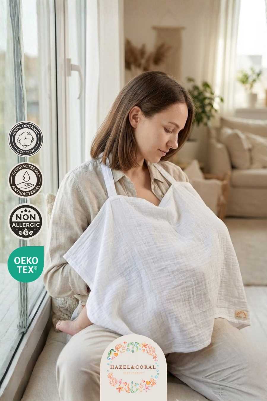 Müslin Emzirme Önlüğü Beyaz, emzirme anlarını daha konforlu ve özgür hale getirmek için tasarlanmıştır. Çift katlı müslin dokusu sayesinde nefes alabilen bir yapı sunarken aynı zamanda mahremiyet sağlar. Doğal pamuklu kumaşı, bebeğinizin hassas cildiyle uyumlu olup yumuşak ve nazik bir temas sağlar.