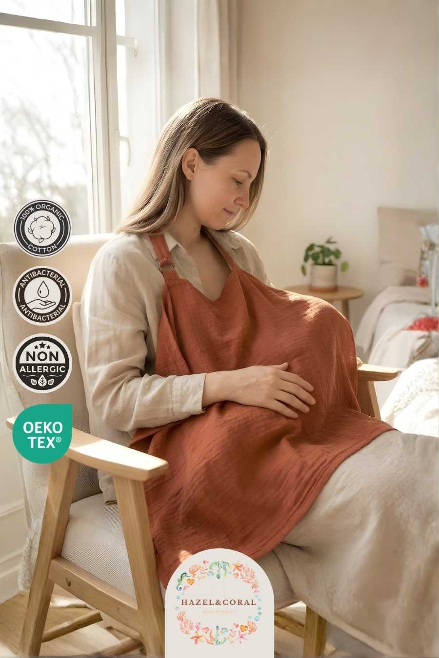 Müslin Emzirme Önlüğü Kahverengi, emzirme sürecini hem konforlu hem de daha özgür bir deneyime dönüştürmek için tasarlanmıştır. Çift katlı pamuklu müslin kumaşı sayesinde hafif, nefes alabilen ve yumuşak bir yapı sunar. Bebeğinizin hassas cildiyle uyumlu doğal dokusu, uzun süreli kullanımda dahi rahatlık sağlar.
