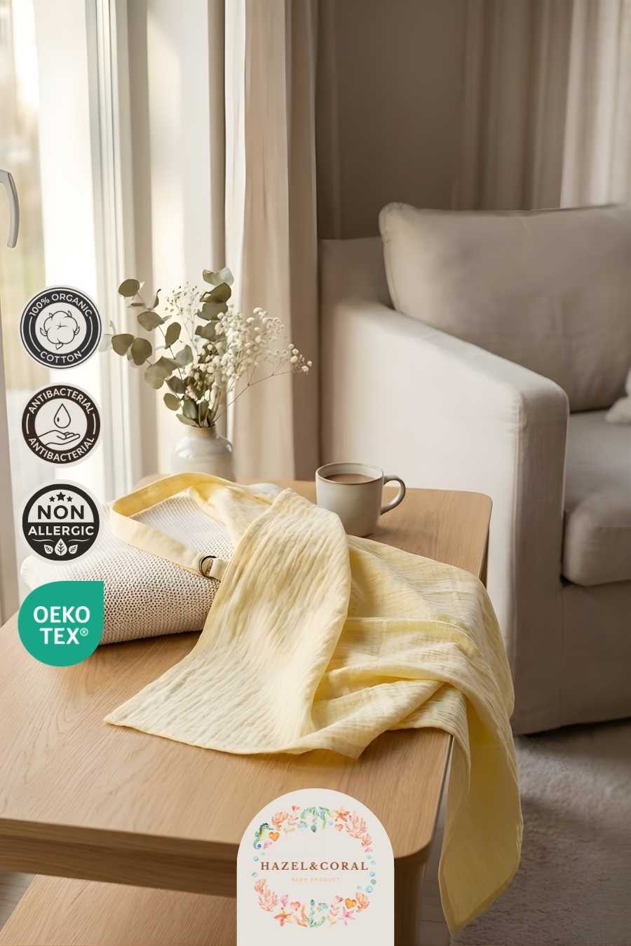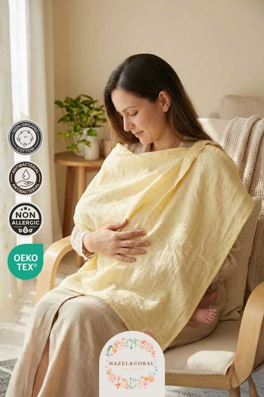 Müslin Emzirme Önlüğü Sarı, emzirme anlarını daha konforlu, güvenli ve estetik hale getirmek için tasarlanmıştır. Çift katlı pamuklu müslin kumaşı, nefes alabilen ve hafif yapısı ile hem sizin hem de bebeğinizin konforunu ön planda tutar. Doğal dokusu, hassas bebek cildine nazik bir temas sağlar.
